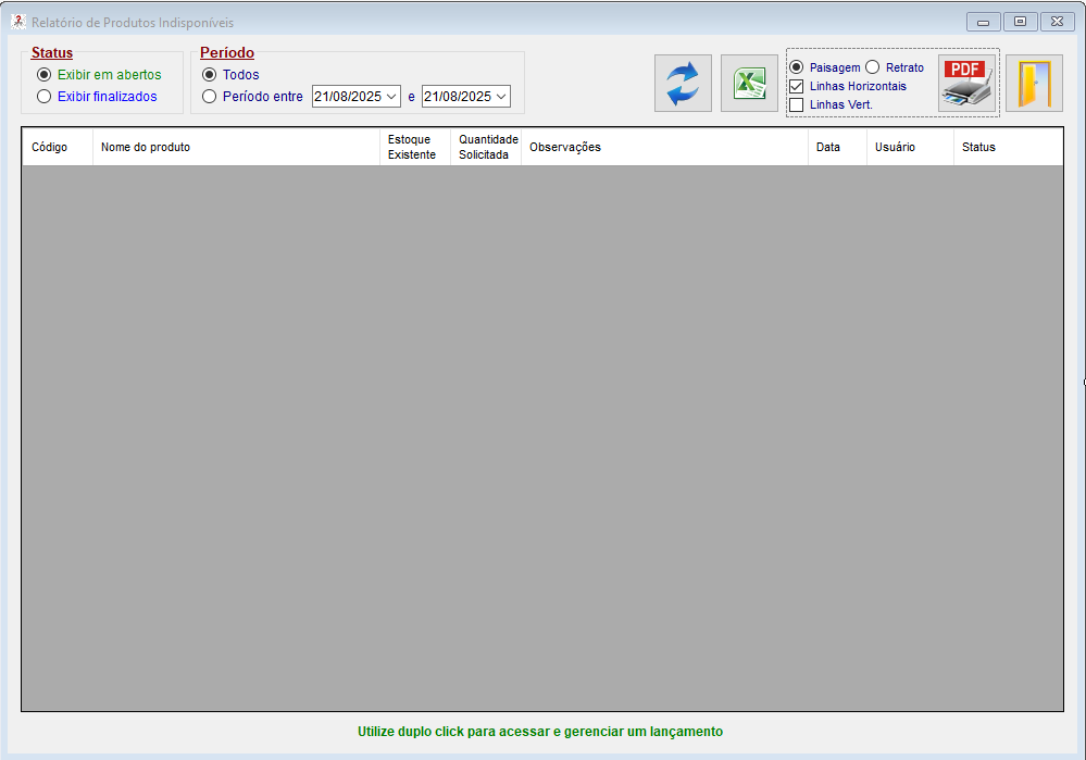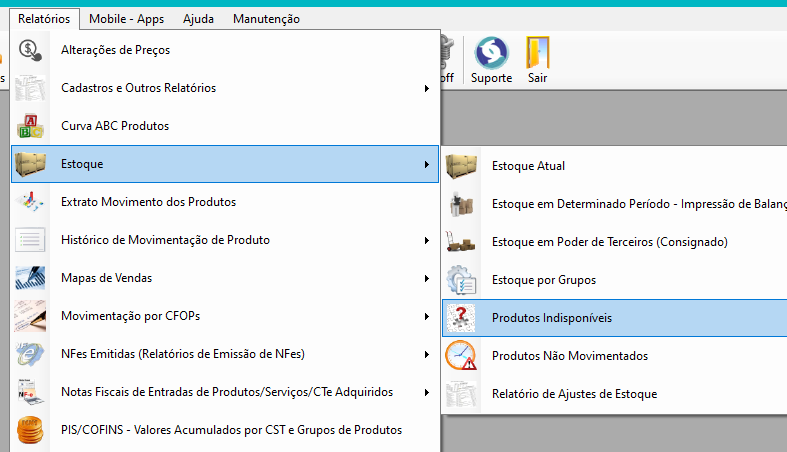 Relatório e Controle de Produtos Indisponíveis (Faltantes)