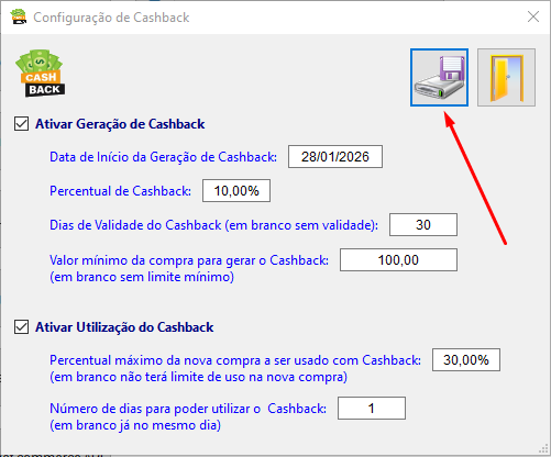 Após isto, a cada venda com CPF ou CNPJ o sistema gerará Cashback de acordo com a configuração definida.